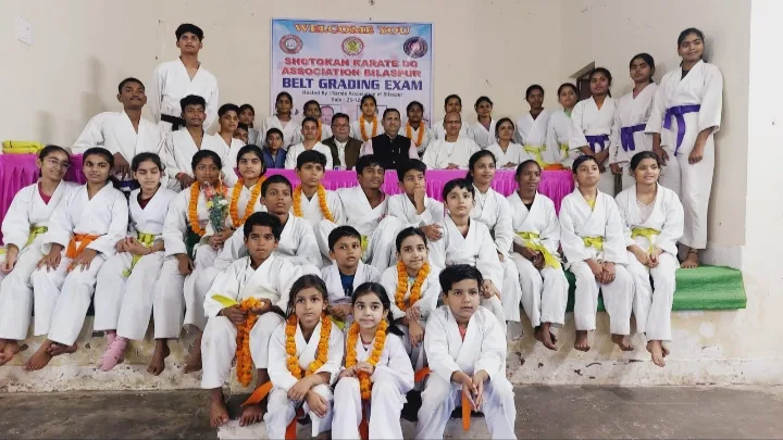 प्रथम शोतो कान स्टाइल कराटे एसोसिएशन बिलासपुर द्वारा आयोजित कराते बेल्ट परीक्षा में बिलासपुर जिले के 52 बच्चों ने सामुदायिक भवन शनि मंदिर राजकिशोर नगर में परीक्षा दिलाई। इस अवसर पर अतिथियों ने भी उनका उत्साहवर्धन किया। बिलासपुर कराटे अकादमी के 26 बच्चों सहीत डीपी महाविद्यालय के 26 बच्चों को मिलाकर 52 बच्चों ने परीक्षा उत्तीर्ण की। खिलाड़ियों के अथक परिश्रम से कराते के बारीकियों को सिखाते हुए पंच किक डाची कराटे काता/ कुमिते टेस्ट देते हुए बेल्ट परीक्षा पास की इसमें येलो ऑरेंज ब्राउन पर्पल बेल्ट के लिए ग्रेडिंग दी। मुख्य प्रशिक्षक सिंहान सुशील चंद्रा अध्यक्ष कराटे एसोसिएशन ऑफ़ छत्तीसगढ़ श्री सिंहान अविनाश शेट्टी की महासचिव कराते एसोसिएशन ऑफ छत्तीसगढ़ मुख्य प्रशिक्षक