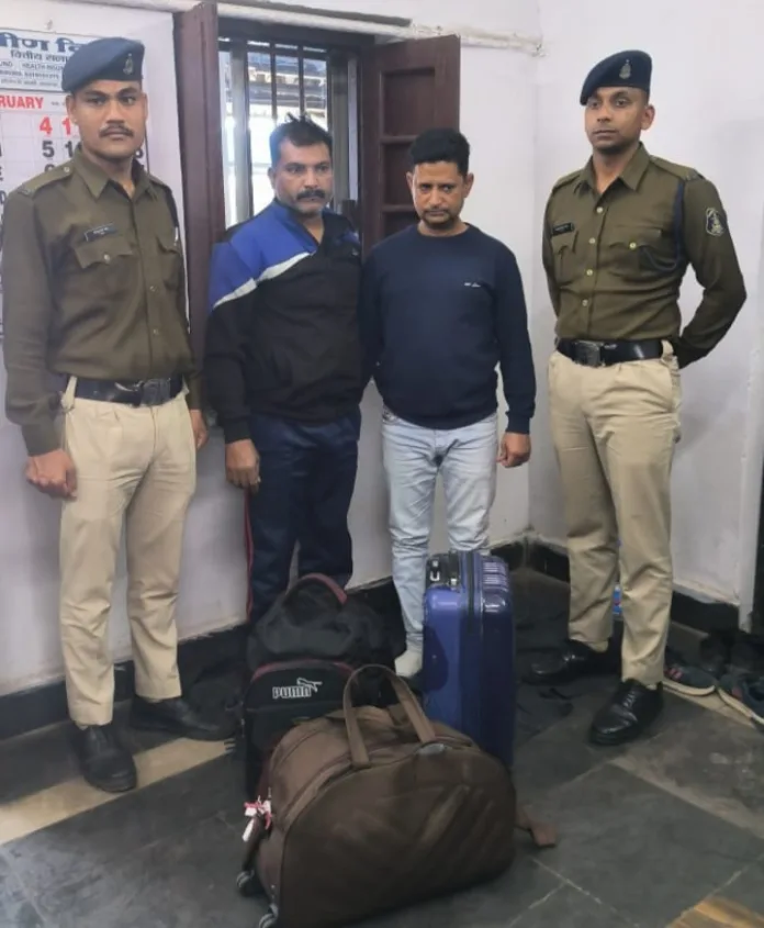 श्रीमान पुलिस महानिदेशक महोदय के आदेश पालन में* श्रीमान एस आर पी रेल रायपुर महोदय के निर्देश से मुखबिर कि सूचना प्राप्त होने पर श्रीमान उप.पु.अधि. महोदय के मार्गदर्शन पर जी आर पी एंटी क्राइम टीम जीआरपी बिलासपुर द्वारा आज दिनांक 29/02/2024 को चम्पा रेलवे स्टेशन के प्लेट फ़ार्म नंबर 2 रायपुर छोर में खड़ी ट्रेन पुरी बीकानेर ट्रेन से दो व्यक्ति विक्की मिश्रा पिता रामाकांत मिश्रा उम्र 42 वर्ष पता बनारस उत्तरप्रदेश व अस्वनी दुबे पिता कासी दुबे उम्र 40 वर्ष पता बनारस उत्तरप्रदेश के पास एक साइड बैग ट्रॉली जिसके अंदर 15किलो ग्राम अवैध मादक पदार्थ गाँजा उड़ीसा से उत्तरपर्देश परिवहन कर रहा था जिसकी क़ीमत लगभग 300000,लाख –/रू आकी गई हैं उक्त आरोपी को पकड़कर जी.आर.पी.चौकी चाँपा को सुपुर्द किया जहां धारा 20(B) NDPS ACT के तहत कार्यवाही कर मान.न्यायालय में पेश किया गया।