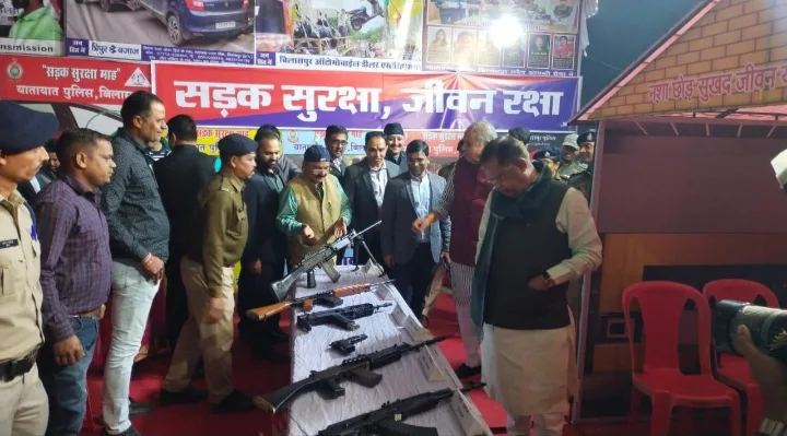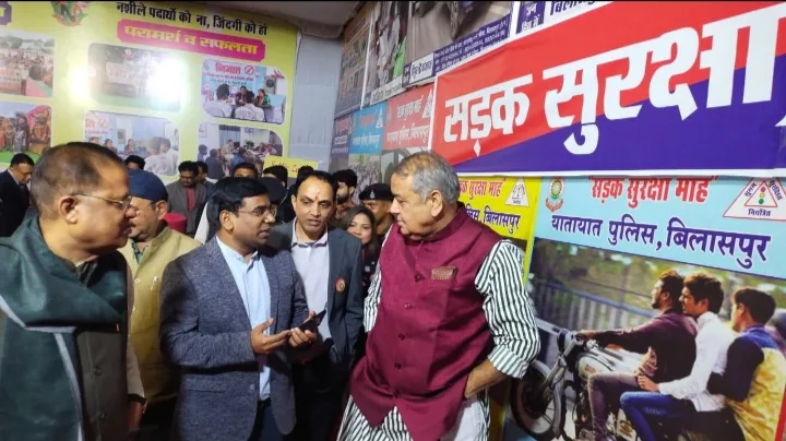 बिलासपुर पुलिस के द्वारा पुलिस अधीक्षक संतोष सिंह के नेतृत्व में तथा अतिरिक्त पुलिस अधीक्षक (शहर) श्री राजेंद्र जयसवाल, अतिरिक्त पुलिस अधीक्षक (ग्रामीण) श्रीमती अर्चना झा, उप पुलिस अधीक्षक लाइन मंजुलता केरकेट्टा के मार्गदर्शन में पुलिस लाइन ग्राउंड में आयोजित पुलिस बैंड प्रदर्शनी में पुलिस स्टाल लगा कर यातायात जागरूकता के तहत् यातायात नियम और यातायात से जुड़े सामग्री जो नियम पालन कराने हेतु कार्यवाही के दौरान उपयोग की जाती है उनकी प्रदर्शनी व यातायात नियम का पालन करने की अपील लोग से की गई इसी क्रम में पुलिस के ड्यूटी दौरान उपयोग में ली जाने वाले आर्म्स, सुरक्षा संसाधन सामग्री और बीडीएस टीम का लगाया गया प्रदर्शनी लगी गई जिससे लोगो ने पुलिस की सुरक्षा व्यवस्था की गंभीरता को समझें और सावधानी रखें ।
