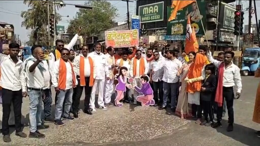 छत्तीसगढ़ के बिलासपुर में वेलेंटाइन डे के विरोध में शिवसेना ने शनिवार को जोरदार प्रदर्शन किया। देवकीनंदन चौक पर आयोजित विरोध प्रदर्शन में कार्यकर्ताओं ने वेलेंटाइन का पुतला दहन कर पश्चिमी संस्कृति के खिलाफ जमकर नारेबाजी की। इससे पहले शिवसेना कार्यकर्ताओं ने शहर में बाइक रैली निकाली और युवाओं से वेलेंटाइन डे के नाम पर फैल रही वेस्टर्न कल्चर से दूर रहने की अपील की। रैली के दौरान कार्यकर्ताओं ने भारतीय संस्कृति, पारिवारिक मूल्यों और परंपराओं को अपनाने का संदेश दिया।