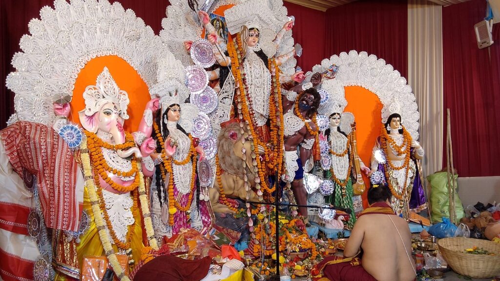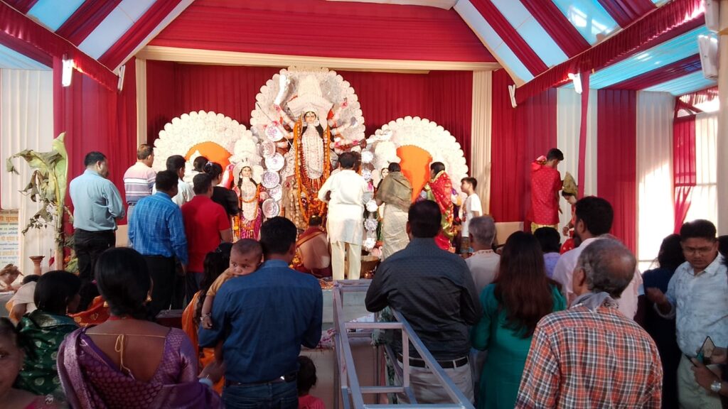 उत्सव धर्मी बंगाली समाज के लिए शारदोत्सव के अलग ही मायने हैं । यह पांच दिवसीय आयोजन है। नए कपड़े, गहने, साजसज्जा के साथ अपने घरों की ओर लौटने की शुरुआत पूजा से पहले ही हो जाती है। बिलासपुर में भी बंगाली एसोसिएशन की पूजा में उसी परंपरा को देखा जा सकता है । षष्ठी पर बोधन के साथ आयोजन की शुरुआत हुई। सिंह पर सवार 10 भुजा मां दुर्गा अपने 10 हाथों में 10 प्रकार के अस्त्र-शस्त्र धारण किए हुए हैं। मां महिषासुर मर्दिनी है । बंगाल की परंपराओं में शंख ध्वनि और उलूक ध्वनि के साथ उनकी पूजा अर्चना होती है। बंगाल की मान्यता है कि मां दुर्गा अपने बच्चों के साथ भू लोक पर आती है। गणेश , कार्तिकेय, लक्ष्मी और सरस्वती को उनके संतान के रूप में पूजा जाता है। वैसे तो इसका हर दिन विशेष है लेकिन महा अष्टमी यहां सबसे महत्वपूर्ण है। महा अष्टमी और महानवमी के संधिकाल में संधि पूजा की जाती है ।