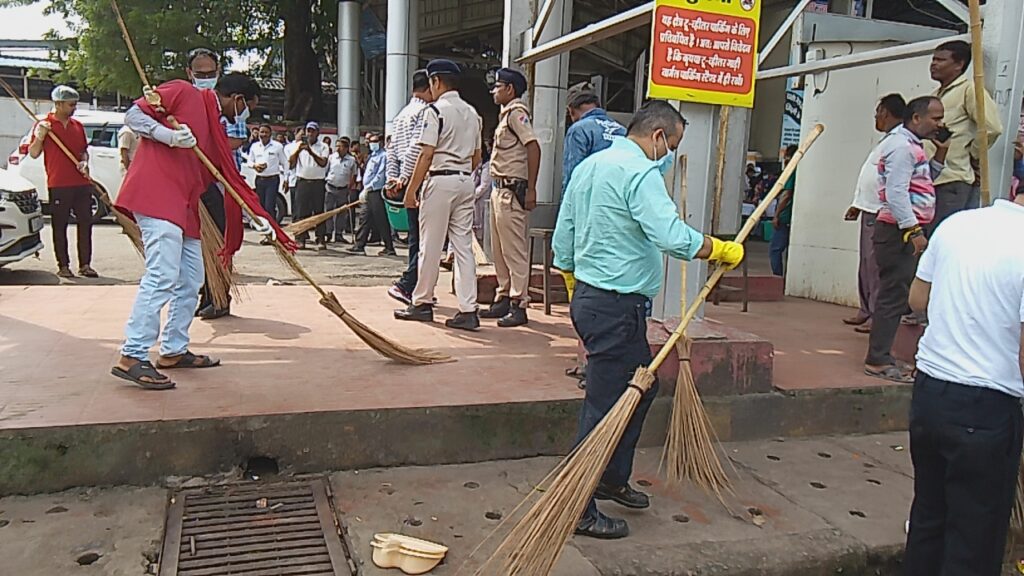 बिलासपुर रेलवे स्टेशन में जीएम और डीआरएम ने श्रमदान कर दिया स्वच्छता का संदेश