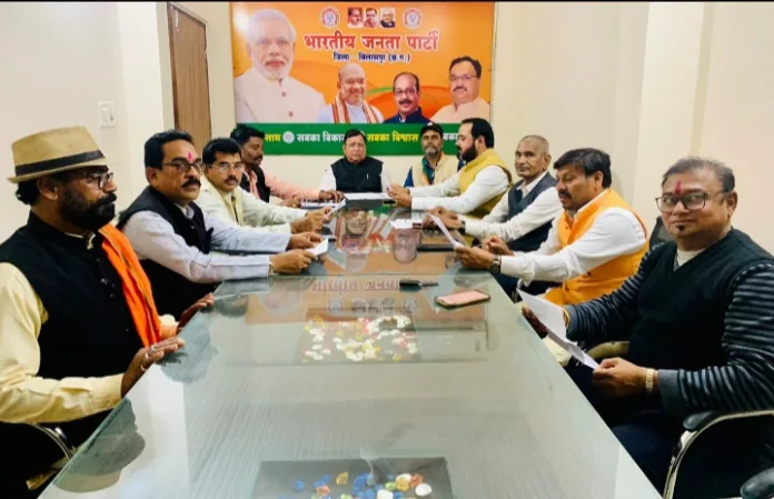 बैठक में भाजपा जिलाध्यक्ष रामदेव कुमावत, जिला महामंत्री घनश्याम कौशिक, जिला मंत्री अवधेश अग्रवाल, रामू साहू, पिछड़ा वर्ग मोर्चा जिलाध्यक्ष कृष्ण कुमार कौशिक, अनुसूचित जाति मोर्चा जिलाध्यक्ष चंद्रप्रकाश सूर्या, किसान मोर्चा जिलाध्यक्ष दुर्गा प्रसाद कश्यप, भाजपा जिला कार्यसमिति सदस्य दीपक सिंह, प्रदीप कौशिक सहित पदाधिकारी उपस्थित रहे।