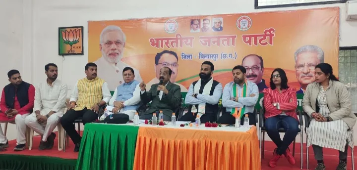 बैठक का संचालन संभाग प्रभारी रितेश मोहरे व आभार युवा मोर्चा जिलाध्यक्ष निखिल केशरवानी ने किया। उक्त बैठक में युवा मोर्चा प्रदेश प्रभारी बेलतरा विधायक सुशांत शुक्ला, भाजपा जिलाध्यक्ष रामदेव कुमावत, भाजयुमो प्रदेश महामंत्री अंकित जायसवाल, प्रदेश उपाध्यक्ष बिलासपुर संभाग प्रभारी रितेश मोहरे, खुशन बंजारे, गौरी गुप्ता, अनमोल झा, मिथलेश केशरवानी सहित सभी युवा मोर्चा के जिलाध्यक्ष, महामंत्री, जिला प्रभारी सह प्रभारी उपस्थित थे।