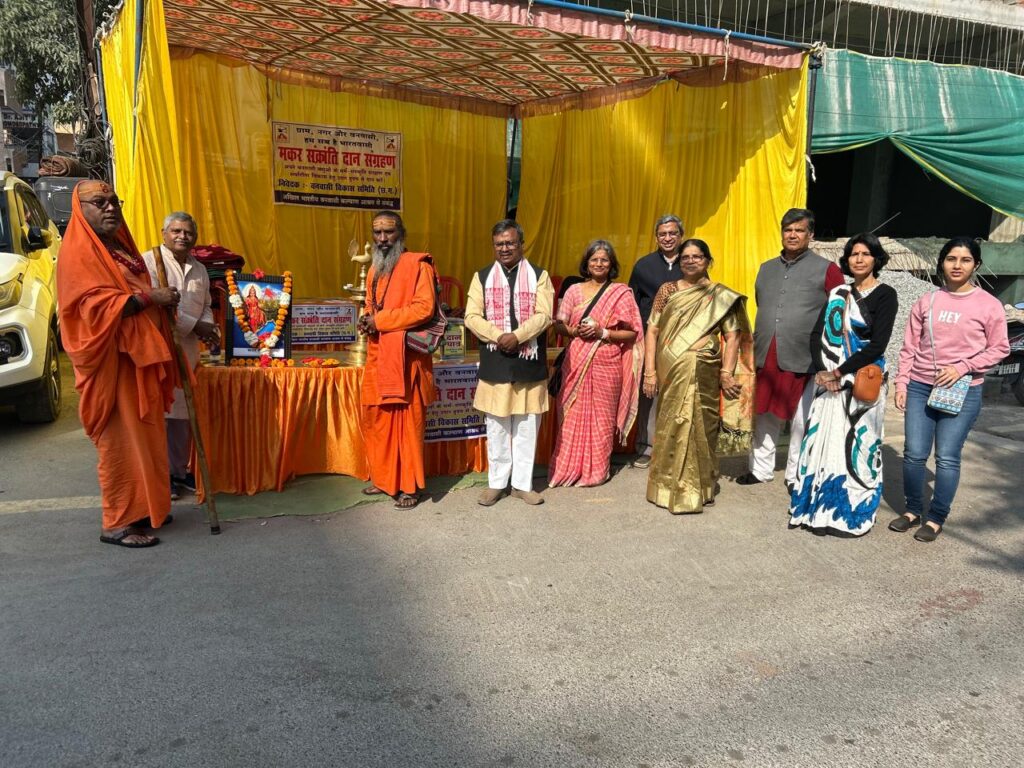 बिलासपुर- वनवासी विकास समिति के तत्वावधान में मकर संक्रांति के पावन अवसर पर बिलासपुर शहर में सेवा और दान का विशेष कार्यक्रम आयोजित किया गया। इस अवसर पर शहर के श्रीकांत वर्मा मार्ग सहित दर्जनों प्रमुख स्थानों पर स्टॉल लगाकर दान एकत्रित किया गया..कार्यक्रम की विधिवत शुरुआत दीप प्रज्ज्वलन के साथ की गई। आयोजन में मुख्य अतिथि के रूप में सुधीरा झा, स्वाति गुप्ता, एन.के. शर्मा, सुधा सिंह एवं सूर्या साहू उपस्थित रहे, अतिथियों ने इस पहल को सामाजिक समरसता और सेवा भावना का प्रतीक बताया..