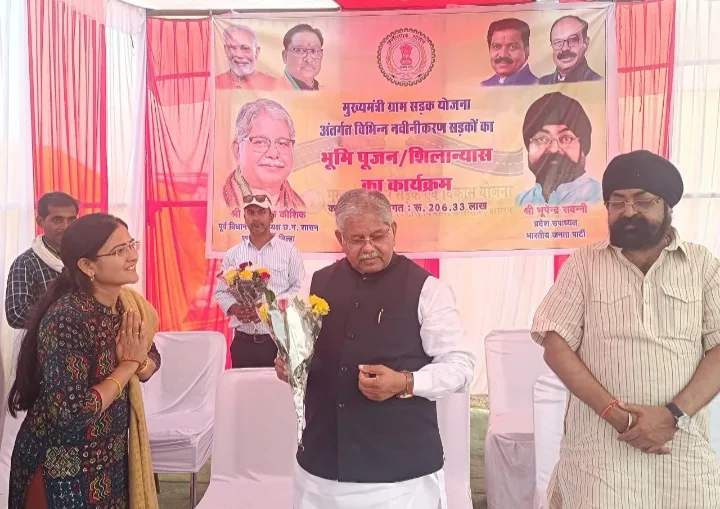 मुख्यमंत्री ग्राम सड़क एवं विकास योजना अंतर्गत ग्राम मोहदा मे आज चोरहाभैना से कोटिया 2.48 कि.मी. लागत 65.13 लाख रुपये, मगरमच्छला लिमतरी मार्ग से फदहा सड़क मार्ग 1.55 कि.मी 36.61 लाख रुपये, बरतोरी मुख्य मार्ग से कुवापाली पहुच मार्ग 1.40 कि. मी, 25. 77लाख मोहदा से अटरा पहुच मार्ग 2.37 कि. मी 78.82 लाख रुपये के लागत से इन मार्ग का नवीनीकरण किया जा रहा है इस अवसर पर प्रदेश उपाध्यक्ष श्री भूपेन्द्र सवन्नी जी, कोमल ठाकुर, सहित ग्राम पंचायतों के सरपंच, कार्यकर्ता गण, विभाग के अधिकारी एवं कर्मचारी उपस्थित रहे