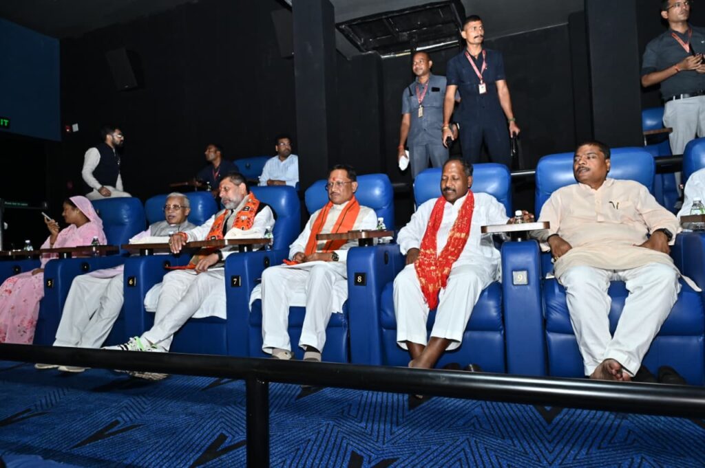 रायपुर के एक मॉल में मुख्यमंत्री विष्णुदेव साय, भाजपा प्रदेश अध्यक्ष किरण देव, संगठन महामंत्री पवन साय समेत मंत्रीगण और पदाधिकारी प्रधानमंत्री नरेंद्र मोदी जी के जीवन पर आधारित डॉक्यूमेंट्री फिल्म चलो जीते हैं सत्य का सिनेमा’ देखने पहुंचे।फिल्म देखने के बाद मुख्यमंत्री साय ने कहा कि यह सिर्फ एक फिल्म नहीं बल्कि सत्य का सिनेमा है