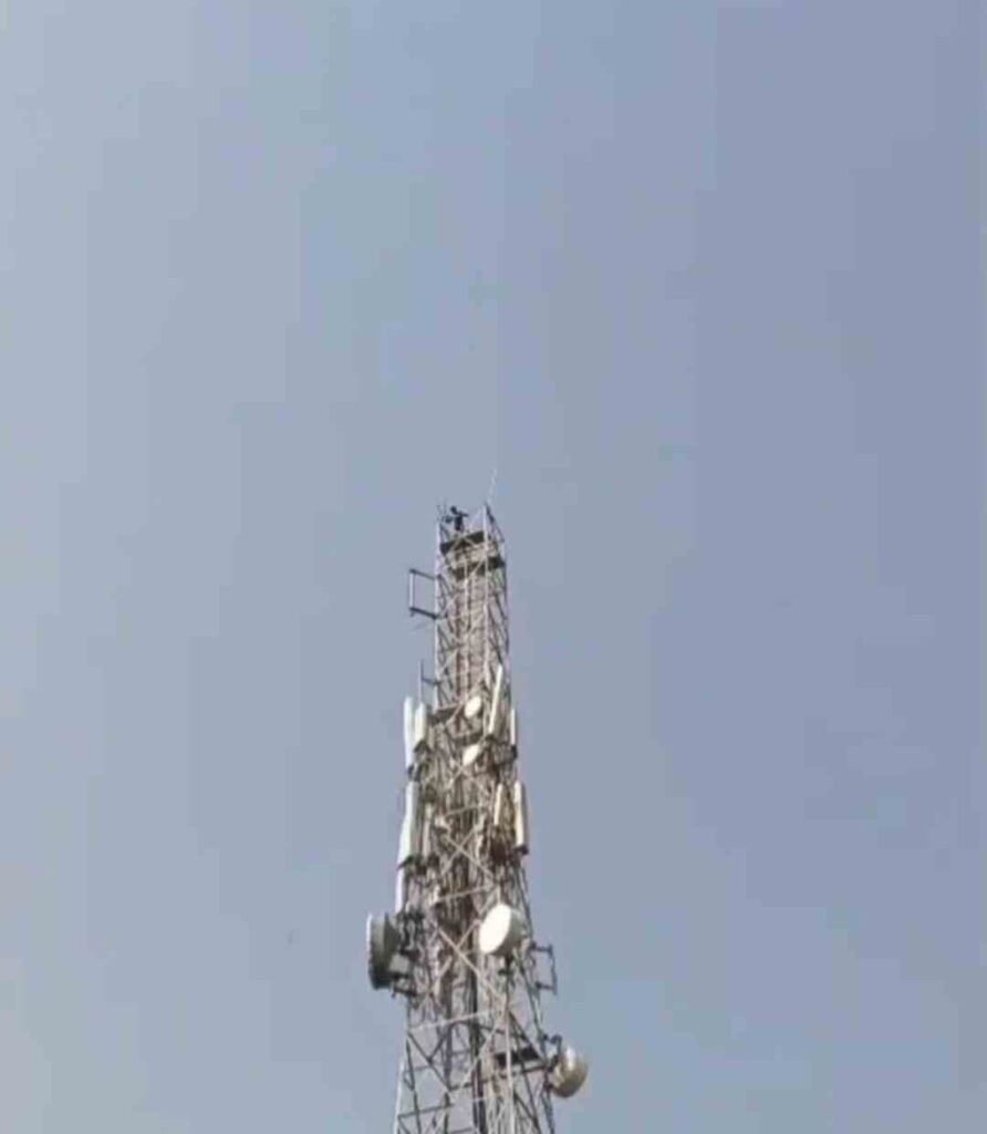 कोरबा जिले में पत्नी से विवाद के बाद शराब के नशे में धुत एक युवक ने जमकर हंगामा किया। गुस्से में युवक गांव में लगे करीब 200 फीट ऊंचे मोबाइल टावर पर चढ़ गया और ऊपर से कूदने की धमकी देने लगा। युवक की मांग थी कि उसकी पत्नी को मौके पर बुलाया जाए, जिससे गांव में अफरा-तफरी मच गई और बड़ी संख्या में लोग जमा हो गए। सूचना मिलते ही पुलिस मौके पर पहुंची और हालात को संभाला। कुछ देर बाद युवक की पत्नी को भी बुलाया गया, लेकिन नशे में होने के कारण युवक किसी की बात मानने को तैयार नहीं था। करीब एक घंटे तक चले हाई वोल्टेज ड्रामे के बाद पुलिस और पत्नी की समझाइश से युवक सुरक्षित टावर से नीचे उतर आया। युवक के नीचे आते ही पुलिस और ग्रामीणों ने राहत की सांस ली, जिसके बाद स्थिति सामान्य हो गई।