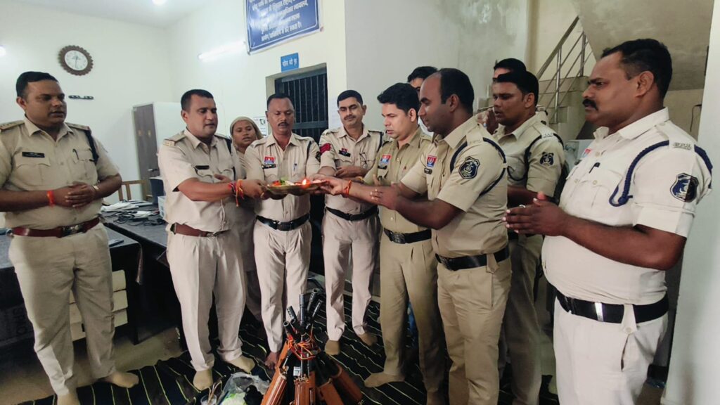 रतनपुर और सकरी थानों में दशहरा पर्व पर विधिविधान से हुई शस्त्र पूजा थाना प्रभारी व स्टाफ ने अस्त्र-शस्त्रों को सम्मानपूर्वक किया पूजन