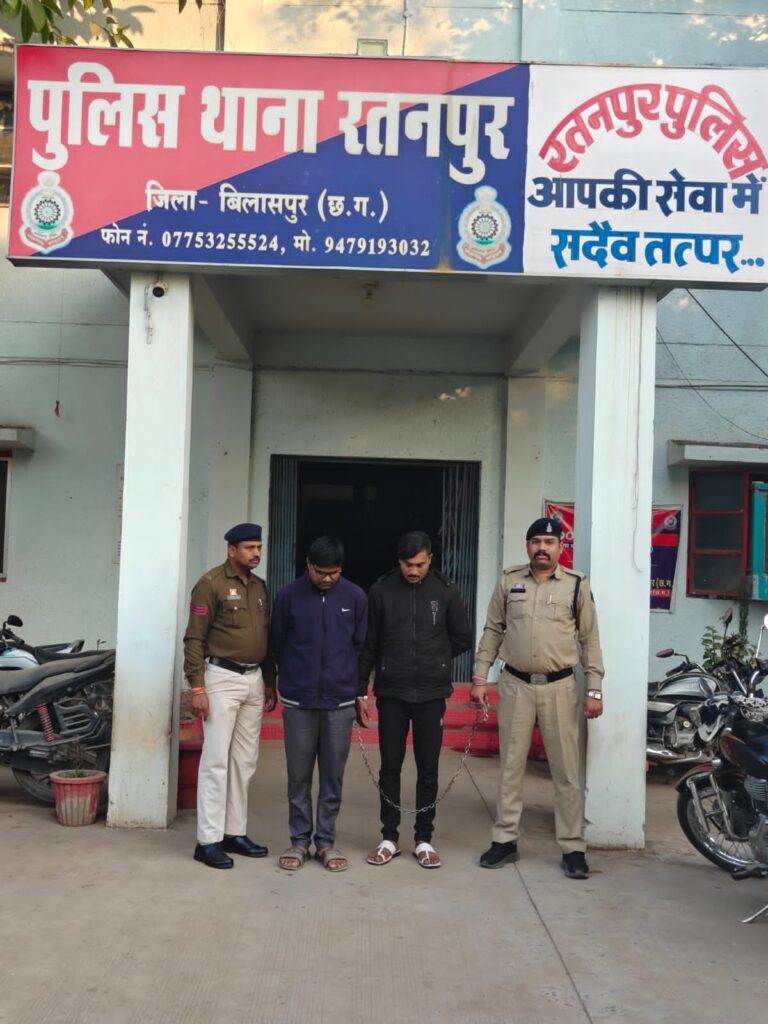 रतनपुर पुलिस की कार्रवाई, शराब के पैसे मांगकर मारपीट करने वाले दो बदमाश गिरफ्तार आदतन अपराधियों को चंद घंटों में पकड़कर भेजा गया जेल
