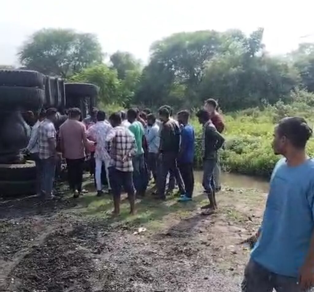 रतनपुर में अनियंत्रित ट्रेलर पलटा, बड़ा हादसा टला,कोयला बिखरने से हाईवे कुछ देर रहा बाधित