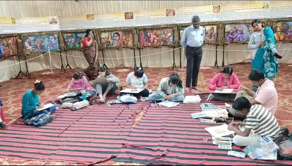 बच्चों को धार्मिक आस्था और भारतीय संस्कृति से जोड़ने के उद्देश्य से लगातार विभिन्न धार्मिक और सनातन कार्यक्रमों का आयोजन किया जा रहा है। इसी कड़ी में शहर के राघवेंद्र राव सभा भवन में पिछले दो दिनों से हनुमान चालीसा प्रदर्शनी लगाई गई है, जो श्रद्धालुओं और खासतौर पर बच्चों के लिए आकर्षण का केंद्र बनी हुई है। प्रदर्शनी का उद्देश्य बच्चों को भारतीय संस्कृति, परंपरा और सनातन मूल्यों से परिचित कराना है।गुरुवार को इस प्रदर्शनी के अंतर्गत बच्चों के लिए हनुमान जी की पेंटिंग स्पर्धा का आयोजन किया गया। प्रतियोगिता में बड़ी संख्या में बच्चों ने उत्साहपूर्वक भाग लिया और अपनी कला के माध्यम से हनुमान जी के विभिन्न रूपों को कागज पर उकेरने का प्रयास किया। किसी ने वीर हनुमान का स्वरूप बनाया तो किसी ने बाल हनुमान और संजीवनी पर्वत उठाते हुए हनुमान जी की कलाकृति प्रस्तुत की। रंगों और कल्पना के जरिए बच्चों ने अपनी आस्था और रचनात्मकता का सुंदर प्रदर्शन किया।कार्यक्रम आयोजकों ने बताया कि इस तरह के आयोजन बच्चों में न केवल धार्मिक चेतना जागृत करते हैं, बल्कि उनकी सृजनात्मक क्षमता को भी बढ़ावा देते हैं। अभिभावकों ने भी इस पहल की सराहना करते हुए कहा कि ऐसे कार्यक्रम बच्चों को मोबाइल और टीवी से दूर रखकर भारतीय संस्कृति से जोड़ने में सहायक हैं।प्रदर्शनी और पेंटिंग स्पर्धा को देखने के लिए बड़ी संख्या में लोग पहुंचे। आयोजन के अंत में प्रतिभागी बच्चों को प्रोत्साहित करने के लिए प्रशस्ति पत्र और पुरस्कार देने की घोषणा भी की गई। आयोजकों का कहना है कि भविष्य में भी इस तरह के सांस्कृतिक और धार्मिक कार्यक्रम आयोजित किए जाते रहेंगे।