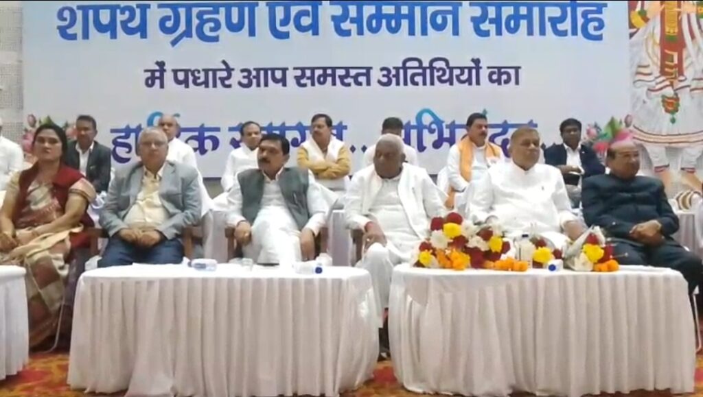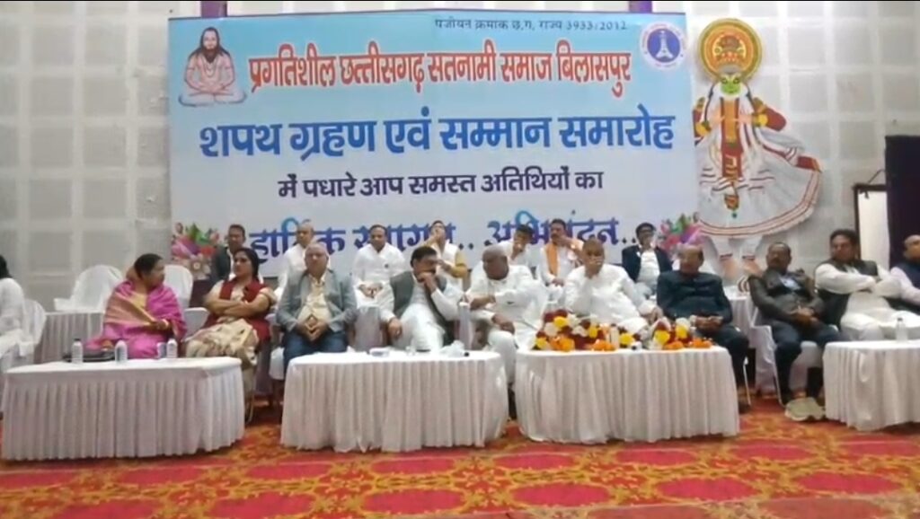 सिम्स ऑडिटोरियम में प्रगतिशील छत्तीसगढ़ सतनामी समाज के यूथ विंग का शपथ ग्रहण एवं सम्मान समारोह गरिमामय वातावरण में आयोजित हुआ। वरिष्ठ साहित्यकार विनोद कुमार शुक्ल के निधन के चलते घोषित राजकीय शोक की वजह से कार्यक्रम सादगी के साथ सम्पन्न किया गया।उपमुख्यमंत्री अरुण साव और कैबिनेट मंत्री रामविचार नेताम सहित कई विधायक अंतिम संस्कार में शामिल होने के कारण समारोह में उपस्थित नहीं हो सके।कार्यक्रम की शुरुआत में समाज के पदाधिकारियों और बड़ी संख्या में मौजूद लोगों ने दो मिनट का मौन रखकर विनोद कुमार शुक्ल को श्रद्धांजलि दी। राजकीय शोक की मर्यादा को ध्यान में रखते हुए सांस्कृतिक गतिविधियों को सीमित रखा गया और पूरे आयोजन में संयम व संवेदना का भाव बना रहा।