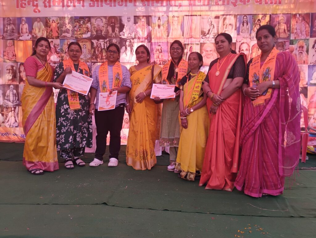 मुख्य अतिथि उपमा सिंह ने मातृ शक्ति को एकजुट होकर राष्ट्र और सनातन धर्म को मजबूत करने का अह्वान किया अध्यक्ष श्री चैन सिंह विध्यराज जी ने युवाओं को एकसूत्र में बंध कर धर्मान्तरण के विरूद्ध एवं