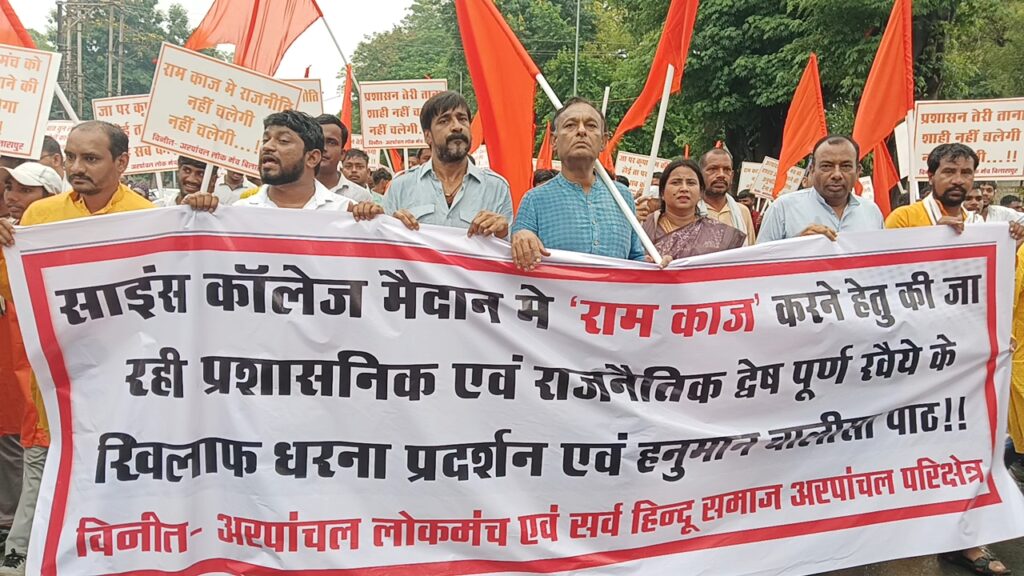 अरपांचल लोक मंच ने इस मुद्दे पर अनोखे तरीके से प्रदर्शन भी किया। बड़ी संख्या में कार्यकर्ता और सर्व हिंदू संगठन से जुड़े लोग कलेक्ट्रेट पहुंचे और हनुमान चालीसा, भजन एवं कीर्तन कर अपनी नाराजगी जाहिर की। इससे माहौल पूरी तरह धार्मिक और सांस्कृतिक रंग में रंग गया। संस्था ने जिला प्रशासन से मांग की है कि विजयादशमी जैसे धार्मिक एवं सांस्कृतिक आयोजनों को राजनीति से दूर रखते हुए निष्पक्ष और न्यायसंगत ढंग से अनुमति प्रदान की जाए। मंच का कहना है कि प्रशासन को परंपरा का सम्मान करते हुए रावण दहन की अनुमति वापस लेनी चाहिए और आयोजन की निरंतरता बनाए रखनी चाहिए। कलेक्टर ने अरपांचल लोक मंच के आपत्ति पत्र पर संज्ञान लेते हुए संबंधित विभाग से चर्चा और मामले की जांच कराने का आश्वासन दिया है। उन्होंने कहा कि सभी पक्षों की बातें सुनने के बाद ही निष्पक्ष और उचित कार्रवाई की जाएगी, ताकि परंपरा और जनभावनाओं का सम्मान बना रहे।