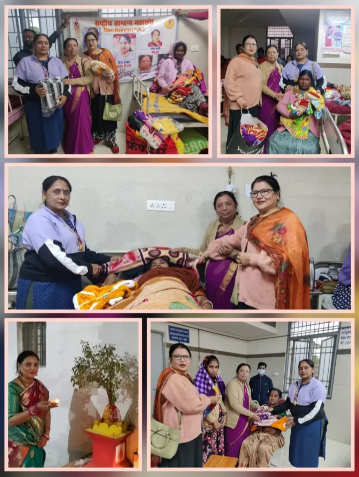 राष्ट्रीय ब्राह्मण महासंघ जिला बिलासपुर की बहनों ने मिलकर शहर के हृदय स्थल स्थित जिला अस्पताल में मातृ शिशु विभाग में जाकर नवजात शिशु एवं उनकी मां को गर्म कपड़ों का वितरण किया नवजात शिशु में गरम स्वेटर पजामी टोपी मोजे एवं उनकी माताओ को गर्म कंबल का वितरण किया गया
