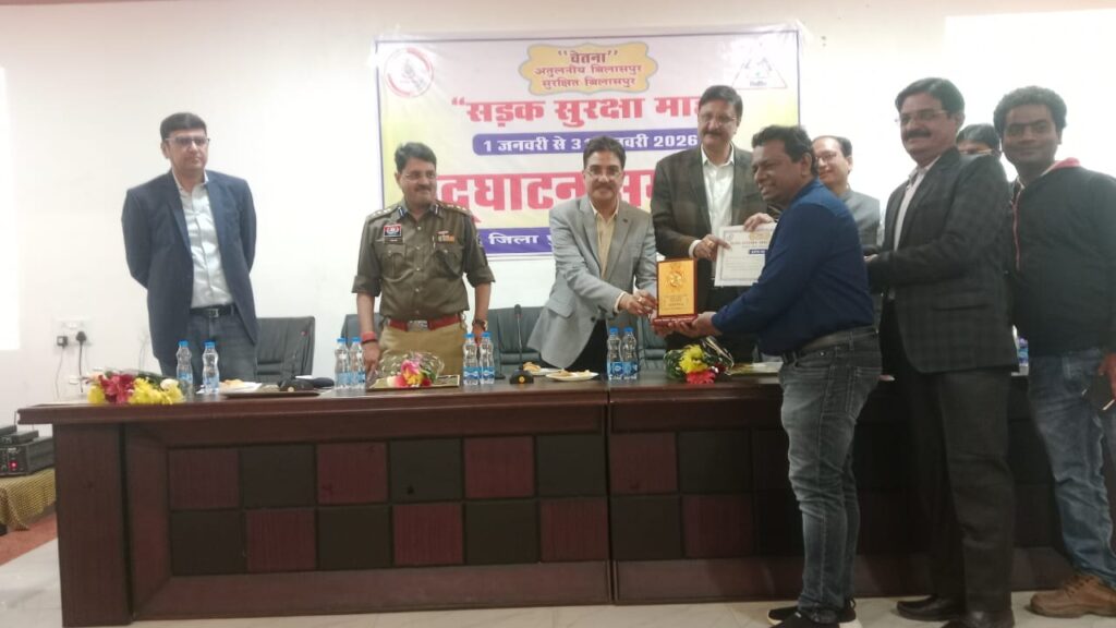 राष्ट्रीय सड़क सुरक्षा माह 2026 का विधिवत शुभारंभ 1 जनवरी को बिलासपुर के चेतना हॉल में किया गया। कार्यक्रम में संभागायुक्त सुनील जैन, आईजी संजीव शुक्ला, कलेक्टर संजय अग्रवाल, एसएसपी रजनेश सिंह सहित प्रशासन और पुलिस के वरिष्ठ अधिकारी मौजूद रहे। दीप प्रज्ज्वलन के साथ कार्यक्रम की शुरुआत हुई।एसएसपी रजनेश सिंह ने यातायात व्यवस्था पर प्रतिवेदन प्रस्तुत करते हुए बताया कि ब्लैक स्पॉट और खतरनाक सड़क खंडों में सुधारात्मक कार्यों के चलते सड़क दुर्घटनाओं में उल्लेखनीय कमी आई है।