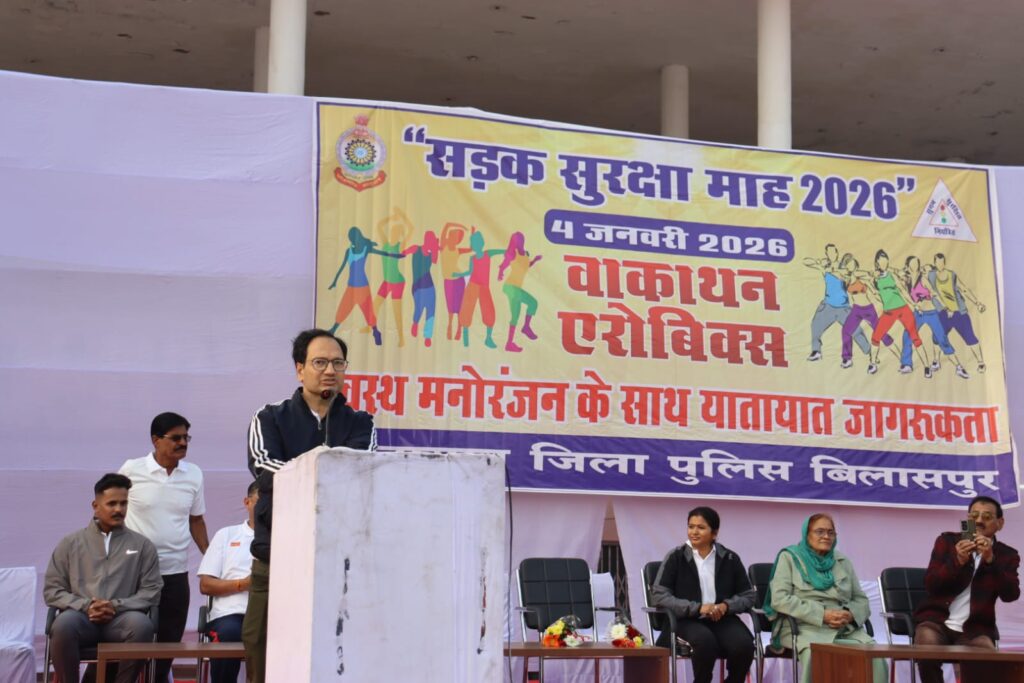 राष्ट्रीय सड़क सुरक्षा माह 2026 के तहत बिलासपुर में वाकाथन और एरोबिक्स आयोजन हजारों नागरिकों की सहभागिता, यातायात नियमों के प्रति जागरूकता का संदेश