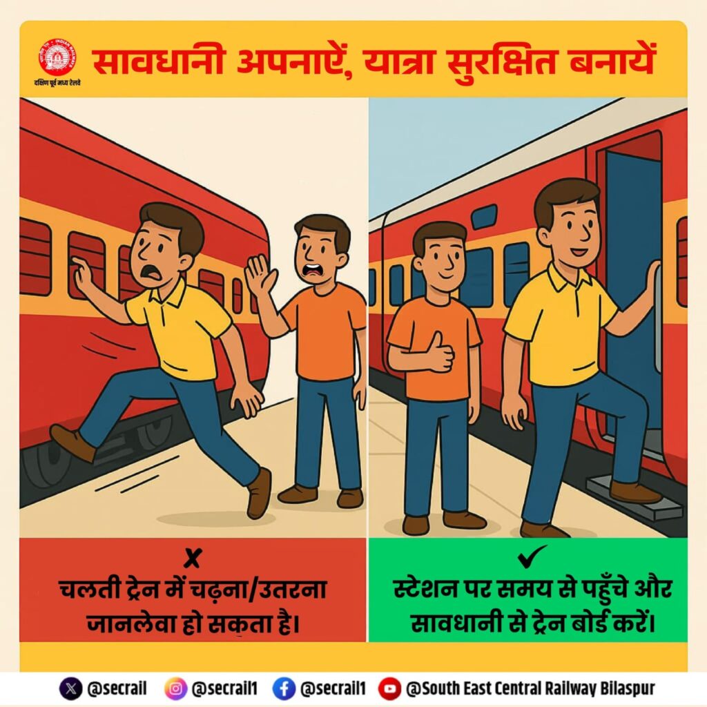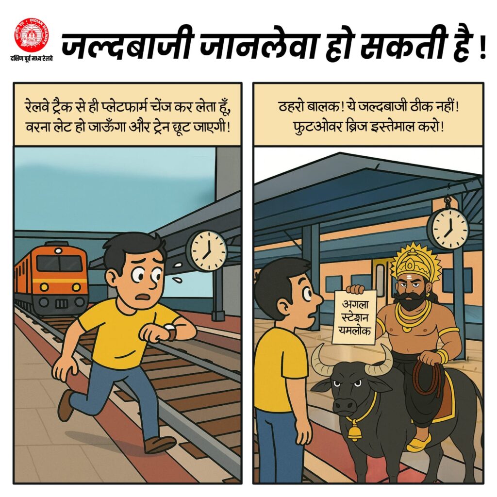 रेल पटरी पार करना, चलती ट्रेन में लटककर सफर करना या बंद फाटक तोड़कर निकल जाना—ये सब एक छोटी सी जल्दबाज़ी में ज़िंदगी का बड़ा ख़तरा बन जाते हैं। इन्हीं हादसों को रोकने के लिए दक्षिण पूर्व मध्य रेलवे ने एक अनोखा जागरूकता अभियान शुरू किया है, जो आम जनता को सुरक्षा के नियमों के प्रति सजग करने का प्रयास है।दक्षिण पूर्व मध्य रेलवे अब सीधे आम जनता से संवाद कर रहा है, वो भी दिलचस्प तरीकों से। सोशल मीडिया पोस्ट्स, एनिमेटेड कार्टून इमेजेस और ग्राफिक संदेशों के ज़रिए यह बताया जा रहा है कि ट्रेन की पटरियों पर लापरवाही सिर्फ एक गलती नहीं, बल्कि गंभीर अपराध भी है। चलती ट्रेन में चढ़ना, पटरी पार करते समय लापरवाही बरतना या बंद फाटक से गुजरना—इन सबका नतीजा जानलेवा हो सकता है।सीपीआरओ ने कहा हमारा प्रयास है कि हर नागरिक तक सुरक्षा का संदेश पहुंचे। यह सिर्फ कानून पालन नहीं बल्कि जीवन की रक्षा है।