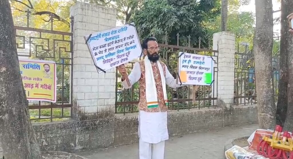 शहर के विभिन्न क्षेत्रों में नगर निगम द्वारा लगातार अतिक्रमण हटाने की कार्रवाई जारी है। सड़क पर दुकान लगाकर व्यापार करने वालों को हटाया जा रहा है, जिससे छोटे व्यापारियों में नाराजगी बढ़ती जा रही है। इसी क्रम में गुरुवार को छोटे व्यापारी विजय दुबे ने कलेक्टर कार्यालय के सामने विरोध प्रदर्शन शुरू किया। विजय दुबे ने आरोप लगाया कि नगर निगम बिना किसी वैकल्पिक व्यवस्था के सामान जब्त कर रही है। उन्होंने कहा कि वे जैसे छोटे व्यापारी चार–पांच हजार रुपये का व्यापार कर रोज की बिक्री से ही अपने परिवार का खर्च चलाते हैं। ऐसे में यदि निगम उनका सामान उठा लेती है, तो उनके सामने रोजीरोटी का संकट खड़ा हो जाता है।