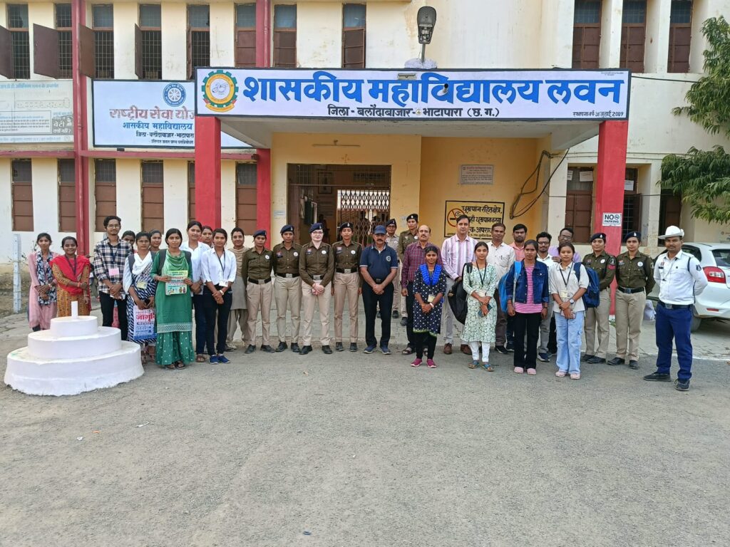बलौदाबाजार-भाटापारा पुलिस की “टीम शक्ति” ने भावना गुप्ता के निर्देशन में शासकीय महाविद्यालय लवन में विशेष जागरूकता कार्यक्रम आयोजित किया। कार्यक्रम में छात्र-छात्राओं को सड़क सुरक्षा, साइबर अपराध से बचाव, महिलाओं की सुरक्षा और आत्मरक्षा के उपायों के बारे में विस्तार से जानकारी दी गई तथा जिम्मेदार नागरिक बनने का संदेश दिया गया।