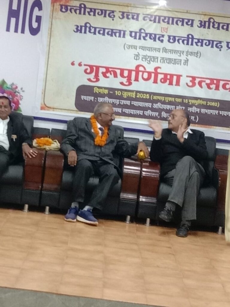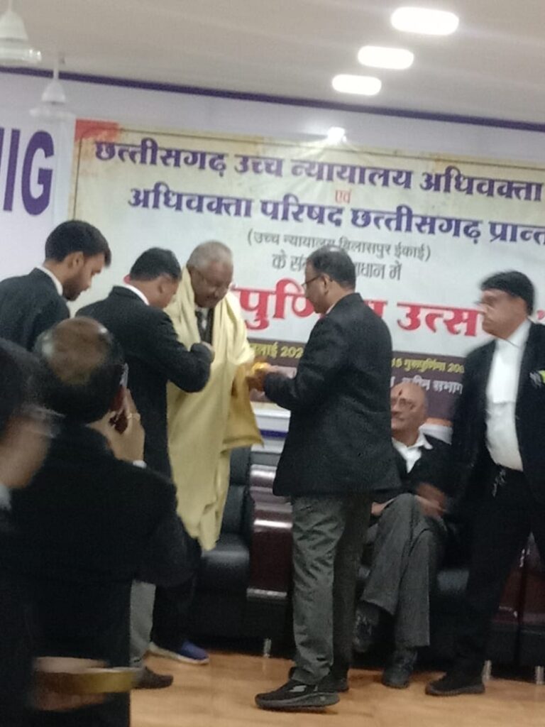 बिलासपुर गुरु पूर्णिमा के पावन अवसर पर छत्तीसगढ़ उच्च न्यायालय के वरिष्ठ अधिवक्ता अशोक कुमार वर्मा को उनकी 50 वर्षों की उत्कृष्ट वकालत यात्रा पूर्ण करने पर विशेष सम्मान प्रदान किया गया। यह सम्मान छत्तीसगढ़ उच्च न्यायालय अधिवक्ता संघ एवं अधिवक्ता परिषद छत्तीसगढ़ प्रांत की उच्च न्यायालय इकाई के संयुक्त तत्वाधान में आयोजित एक गरिमामय समारोह में प्रदान किया गया।