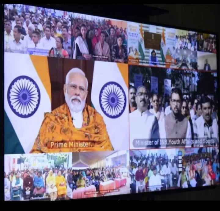 बिलासपुर, 9 दिसंबर 2023/प्रधानमंत्री श्री नरेन्द्र मोदी आज नई दिल्ली में आयोजित कार्यक्रम में विकसित भारत संकल्प यात्रा के लाभार्थियों से वीडियो कान्फ्रेंसिंग के जरिए रूबरू हुए। कृषि विज्ञान केंद्र बिलासपुर से 150 से ज्यादा किसानों और अन्य लोगों ने वीडियो कान्फ्रेंसिंग के माध्यम से जुड़कर समारोह में हिस्सा लिया। प्रधानमंत्री श्री मोदी ने कहा कि मजबूत इच्छाशक्ति के बलबूते कुछ भी किया जा सकता है। हमने जो योजनाएं बनाई हैं उसके मुताबिक हम लाभार्थियों को ढूंढते हैं और सामने से जाकर उन तक योजना का लाभ पहुंचाने का काम कर रहे हैं। लोगों को बहुत सारी योजनाओं का लाभ मिला है, जिससे लोगों का विश्वास बढ़ता है और जिन्दगी जीने की ताकत आती है। आज युवा शहर जाना छोड़कर गांव लौट रहे हैं और यहां खेती कर लाखों में फायदा कमा रहे हैं।