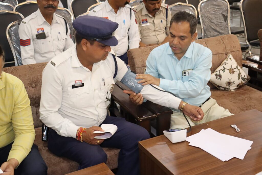 यातायात पुलिस बिलासपुर द्वारा विश्व स्वास्थ्य दिवस के अवसर पर चेतना भवन पुलिस लाइन में निःशुल्क स्वास्थ्य एवं चिकित्सा शिविर आयोजित किया गया। वरिष्ठ पुलिस अधीक्षक रजनेश सिंह के निर्देशन में आयोजित इस शिविर में 300 से अधिक पुलिस अधिकारी-कर्मचारियों का स्वास्थ्य परीक्षण किया गया, जिसमें हृदय, श्वास, मधुमेह, रक्तचाप और अन्य बीमारियों की जांच की गई।
