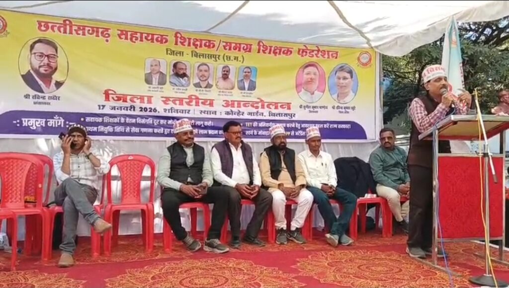 छत्तीसगढ़ सहायक शिक्षक/समय शिक्षक फेडरेशन के आह्वान पर शनिवार को बिलासपुर के कोन्हेर गार्डन में हजारों की संख्या में शिक्षक एकत्र हुए। वेतन विसंगति, क्रमोन्नति, ओबीसी आरक्षण सहित विभिन्न लंबित मांगों को लेकर एक दिवसीय धरना-आंदोलन किया गया। जिलाध्यक्ष सुनील पाण्डेय ने कहा कि शिक्षकों की मांगें कोई नई नहीं हैं, बल्कि यह उनका संवैधानिक अधिकार है, जिसे लंबे समय से अनदेखा किया जा रहा है।धरने को संबोधित करते हुए वक्ताओं ने कहा कि विधानसभा चुनाव से पहले भाजपा ने अपने घोषणा पत्र में वेतन विसंगति दूर करने और क्रमोन्नति का लाभ देने का वादा किया था, लेकिन सरकार बने दो वर्ष से अधिक समय बीतने के बावजूद समस्याओं का समाधान नहीं हुआ।