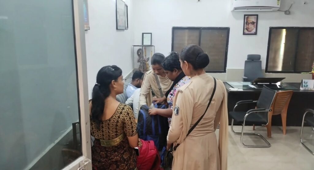जिससे यह आभास होता है कि वह किसी के संपर्क में है और सवालों के कुछ जवाब दे रही है की परीक्षा हॉल की भीतर बैठी किसी परीक्षार्थी के साथ उसका संपर्क है केंद्र प्रभारी तुरंत एक्शन में आए अंदर और बाहर जांच पड़ताल शुरू कर दी में बैठी लड़की को कब्जे में लेकर और लड़की से पूछता उसके बाद किया और हाल में बैठी एक लड़की को हिरासत में लिया पुलिस और केंद्र प्रभारी दोनों लड़कियों से लगातार दोनों लड़कियों से पूछताछ कर रहे हैं उनके पास से एक लैपटॉप कई प्रकार के माइक्रो डिवाइस एडवांस इलेक्ट्रॉनिक इक्विपमेंट बरामद किए हैं। कांग्रेस के वरिष्ठ नेता राजेश शुक्ला भी प्रकरण की जानकारी मिलते ही स्कूल पहुंच गए उन्होंने कहा कि उन्होंने कहा कि शिक्षा का स्तर लगातार गिरता जा रहा है