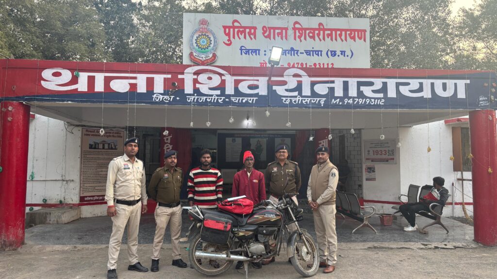 नव वर्ष की शुरुआत में ही जांजगीर-चांपा जिले की शिवरीनारायण पुलिस ने अवैध मादक पदार्थ गांजा के खिलाफ बड़ी कार्रवाई की है।थाना शिवरीनारायण क्षेत्र अंतर्गत पुलिस ने वाहन चेकिंग के दौरान गांजा बिक्री हेतु परिवहन कर रहे दो आरोपियों को रंगे हाथों गिरफ्तार किया है। 31 दिसंबर को शिवरीनारायण पुल चौक मेन रोड पर वाहन चेकिंग के दौरान पुलिस को सूचना मिली कि दो युवक मोटरसाइकिल से पिठ्ठू बैग में गांजा लेकर शिवरीनारायण की ओर आ रहे हैं। थाना शिवरीनारायण पुलिस ने घेराबंदी कर दोनों आरोपियों को धर दबोचा।आरोपियों के कब्जे से 2 किलो 20 ग्राम गांजा, जिसकी कीमत करीब 18 हजार रुपये है, इसके साथ ही 7 हजार 100 रुपये नगद और घटना में प्रयुक्त मोटरसाइकिल जुमला कीमती लगभग 70 हजार 100 रुपये बरामद किए गए हैं।पुलिस ने आरोपियों के खिलाफ एनडीपीएस एक्ट के तहत मामला दर्ज कर उन्हें न्यायिक रिमांड पर भेज दिया है।शिवरीनारायण पुलिस की इस कार्रवाई से नशे के कारोबारियों में हड़कंप मचा हुआ है।