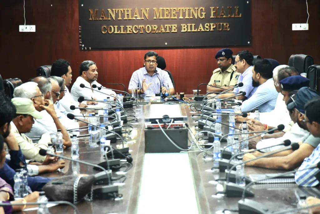 बिलासपुर /कलेक्टर संजीव कुमार झा एवं पुलिस अधीक्षक संतोष कुमार सिंह की मौजूदगी में जिला स्तरीय शांति समिति की बैठक आज यहां जिला कार्यालय के मंथन सभाकक्ष में आयोजित की गई। इस अवसर पर महापौर रामशरण यादव विशेष रूप से मौजूद थे। बैठक में 7 सितम्बर को श्रीकृष्ण जन्माष्टमी, 19 सितम्बर को गणेश चतुर्थी एवं 28 सितम्बर को मिलाद-उन-नबी एवं अनंत चतुर्दशी (गणेश विसर्जन) पर्व आपसी तालमेल एवं भाईचारे की भावना के साथ सौहार्द्रपूर्ण माहौल में मनाने का निर्णय लिया गया। बैठक में सर्वसम्मति से निर्णय लिया गया कि इन पर्वाें के दौरान पावर डीजे प्रतिबंधित रहेगा।
