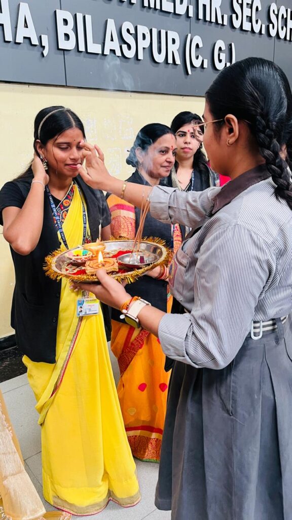 इस भावपूर्ण क्षण ने गुरु-शिष्य परंपरा को जीवंत कर दिया।बच्चों ने शिक्षकों से आशीर्वाद प्राप्त करते हुए जीवन में उत्तम मार्ग पर चलने का संकल्प लिया। समस्त विद्यालय परिसर में भक्ति, श्रद्धा और सम्मान का वातावरण बना रहा।प्रधानाचार्य महोदय ने अपने प्रेरणादायक भाषण में गुरु की महत्ता पर प्रकाश डालते हुए विद्यार्थियों को जीवन में अनुशासन और समर्पण के साथ आगे बढ़ने की प्रेरणा दी।इस अवसर पर सभी शिक्षकगण एवं स्टाफ सदस्य भावविभोर हो उठे। कार्यक्रम का समापन प्रसाद वितरण एवं सामूहिक प्रार्थना के साथ हुआ।