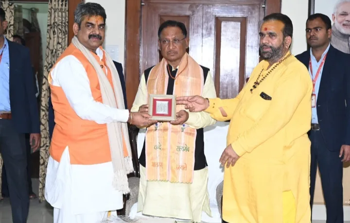 श्री रामलला प्राण प्रतिष्ठा समारोह में आमंत्रित अखिल भारतीय संत समिति धर्म समाज के राष्ट्रीय और छत्तीसगढ़ प्रमुख ने की मुख्यमंत्री विष्णु देव साय से सौजन्य भेंट