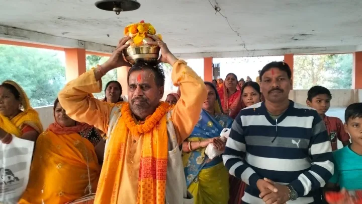 श्री राम मंदिर अयोध्या से आए हुए पुनीत अक्षत कलश यात्रा, लाल खदान ओवर ब्रिज से हनुमान मंदिर लाल खदान में स्थापित किया गया!