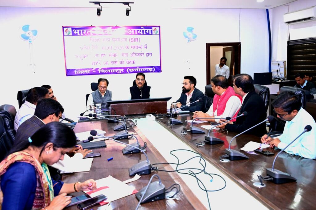 चुनाव आयोग के रोल आब्जर्वर एवं संभागायुक्त सुनील जैन ने एसआईआर को लेकर मंथन सभाकक्ष में राजनीतिक दल के पदाधिकारियों की महत्वपूर्ण बैठक ली। उन्होंने कहा कि एसआईआर का उद्देश्य त्रुटिरहित एवं स्वच्छ मतदाता सूची तैयार किया जाना है। एक भी पात्र मतदाता का नाम सूची में शामिल होने से छूटना नहीं चाहिए तथा कोई भी अपात्र मतदाता का नाम इसमें जुड़ना नहीं चाहिए। इसे देखना एवं निगरानी करना चुनाव आयोग के साथ-साथ राजनीतिक दलों की भी जिम्मेदारी है। इसलिए बखूबी अपनी जिम्मेदारी का निर्वहन करने का आग्रह उन्हें किया गया। बैठक में कलेक्टर संजय अग्रवाल सहित भाजपा, कांगेेस, बसपा, माकपा और आप राजनीतिक दल के पदाधिकारी मौजूद थे।