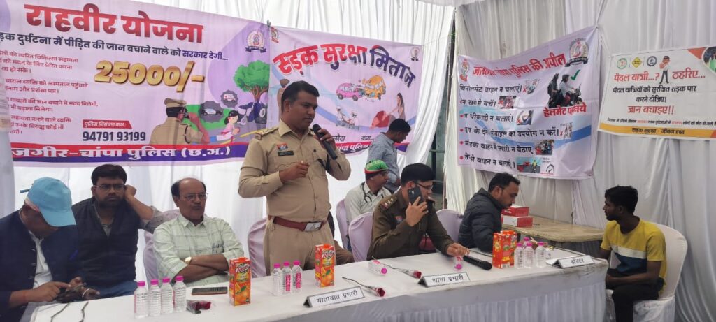 सड़क सुरक्षा माह के तहत जांजगीर-चांपा पुलिस द्वारा बलौदा क्षेत्र में यातायात जागरूकता कार्यक्रम आयोजित किया गया। पुलिस अधीक्षक विजय कुमार पाण्डेय के निर्देशन और अतिरिक्त पुलिस अधीक्षक (यातायात) उदयन बेहार के नेतृत्व में रेडियंट व महावीर कोल वासरी में ड्राइवरों एवं हेल्परों का आंखों और शारीरिक स्वास्थ्य परीक्षण कराया गया।