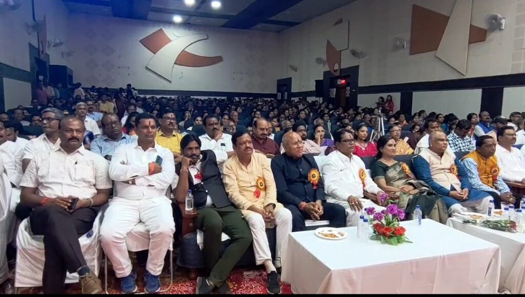 व्ही रामा रावइस गरिमामयी अवसर पर छत्तीसगढ़ बेवरेज कॉर्पोरेशन के चेयरमैन श्रीनिवास राव मद्दी, बिलासपुर नगर निगम की महापौर एल. पद्मजा, डायरेक्टर डॉ. जीएस पटनायक, एवं सीनियर डायरेक्टर डॉ. अरुण पटनायक को समाज की ओर से सम्मानित किया गया।कार्यक्रम के दौरान बच्चों ने पारंपरिक वेशभूषा में मनमोहक नृत्य, गीत-संगीत और सांस्कृतिक प्रस्तुतियाँ देकर माहौल को जीवंत कर दिया। दर्शकों ने तालियों की गूंज से प्रतिभागियों का उत्साह बढ़ाया।एम्बियन्स :- सांस्कृतिक कार्यक्रम वीओ :- समारोह का समापन सामूहिक भोज और धन्यवाद ज्ञापन के साथ हुआ। आयोजन को सफल बनाने में तेलुगु संयुक्त समाज का विशेष योगदान रहा। यह समारोह न केवल सम्मान का अवसर था, बल्कि यह समाज की एकता, प्रेरणा और भविष्य की दिशा को सशक्त करने का संदेश भी बन गया।इस दौरान कार्यक्रम में समाज के सैकड़ों सदस्य शामिल हुए और गौरवशाली क्षणों के साक्षी बने।