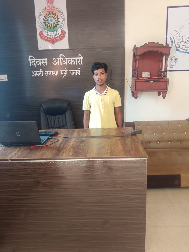 सरकंडा थाना क्षेत्र में पुलिस ने तलवार के साथ अशांति फैलाने वाले आरोपी शिवांश उर्फ शिवा पाण्डेय को गिरफ्तार किया। आरोपी हाथ में तलवार लेकर एक महिला को धमका रहा था। मौके पर पहुंची पुलिस ने घेराबंदी कर उसे दबोच लिया और तलवार जब्त कर ली।वरिष्ठ पुलिस अधीक्षक रजनेश सिंह के निर्देश पर त्योहारों को ध्यान में रखते हुए बदमाशों पर सख्त कार्रवाई की जा रही है। पुलिस ने आरोपी पर आर्म्स एक्ट की धाराओं के तहत अपराध दर्ज कर न्यायिक रिमांड पर जेल भेज दिया है। सरकंडा पुलिस का कहना है कि इसी तरह क्षेत्र में गश्त और असामाजिक तत्वों पर कार्रवाई लगातार जारी रहेगी।