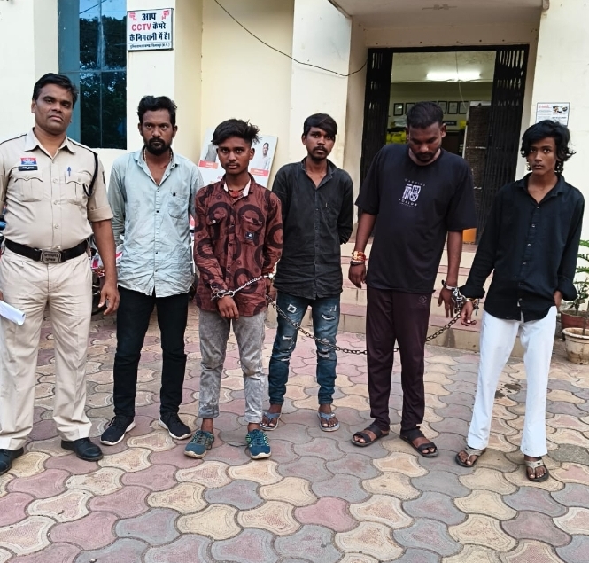 बिलासपुर :- वरिष्ठ पुलिस अधीक्षक रजनेश सिंह के निर्देश पर सरकण्डा थाना क्षेत्र में विशेष अभियान चलाकर असामाजिक तत्वों पर कार्रवाई की गई। थाना प्रभारी निलेश पाण्डेय और पुसके मोपका प्रभारी भावेश सेण्डे के नेतृत्व में टीम ने 22 गुण्डा और 6 निगरानी बदमाशों की चेकिंग की।अभियान के दौरान चिंगराजपारा सुभाष चौक में हिमेश साहू उर्फ राहुल को धारदार चाकू लहराते पकड़ा गया। वहीं मोपका में दीपेन्द्र वर्मा 22.5 लीटर अवैध महुआ शराब कीमत ₹4,450 के साथ हिरासत में लिया गया। दोनों के खिलाफ आर्म्स एक्ट और आबकारी एक्ट के तहत मामला दर्ज किया गया।इसके अलावा, विभिन्न स्थानों पर झुंड बनाकर उपद्रव करने वाले रोशन पटेल, आदर्श सेन, अजय पटेल, धीरज दास, आशीष यादव और राजा यादव के खिलाफ प्रतिबंधात्मक धाराओं में कार्रवाई कर सभी आरोपियों को न्यायालय में पेश किया गया। पुलिस ने आगे भी इस तरह की सख्त कार्यवाही जारी रखने की बात कही है।