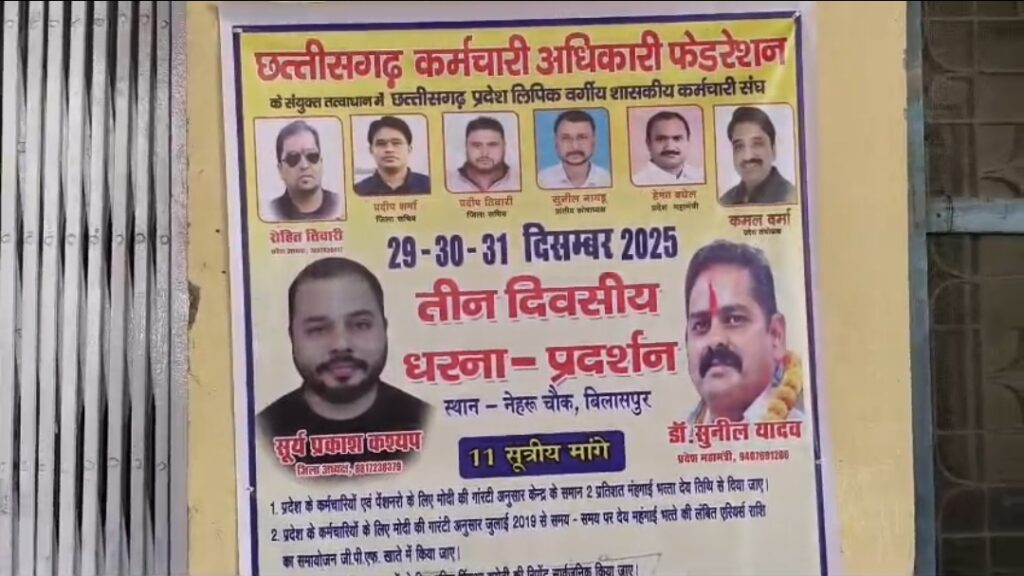 छत्तीसगढ़ में एक बार फिर कर्मचारी आंदोलन की आहट तेज हो गई है। छत्तीसगढ़ कर्मचारी अधिकारी फेडरेशन ने अपनी 11 सूत्रीय लंबित मांगों को लेकर तीन दिवसीय हड़ताल का ऐलान किया है। यह हड़ताल 29 दिसंबर से 31 दिसंबर तक पूरे प्रदेश में ब्लॉक और जिला स्तर पर आयोजित की जाएगी। फेडरेशन ने साफ किया है कि सरकार की लगातार अनदेखी के चलते कर्मचारी अब सड़कों पर उतरने को मजबूर हैं। फेडरेशन का कहना है कि लंबे समय से कर्मचारियों की जायज मांगों को लेकर ज्ञापन बैठक और संवाद किए गए लेकिन सरकार की ओर से कोई ठोस निर्णय नहीं लिया गया। इससे पहले 22 अगस्त को जिला स्तर पर एक दिवसीय धरना प्रदर्शन भी किया गया था बावजूद इसके सरकार ने कोई पहल नहीं की।