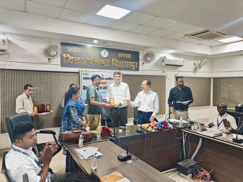 छत्तीसगढ़ राज्य ग्रामीण आजीविका मिशन के अंतर्गत स्व सहायता समूहों के बैंक क्रेडिट लिंकेज को और प्रभावी बनाने के उद्देश्य से जिला पंचायत बिलासपुर द्वारा बैंक अधिकारियों के लिए एक दिवसीय प्रशिक्षण सह कार्यशाला का आयोजन किया गया। यह कार्यशाला राजीव गांधी सभा कक्ष में आयोजित हुई, जिसमें ग्रामीण विकास मंत्रालय भारत सरकार से नियुक्त नेशनल रिसोर्स पर्सन श्री गगन बिहारी भुयां ने एनआरएलएम कांसेप्ट, ऑनलाइन एप्लिकेशन प्रक्रिया और आरबीआई मास्टर सर्कुलर पर सरल भाषा में प्रशिक्षण दिया।