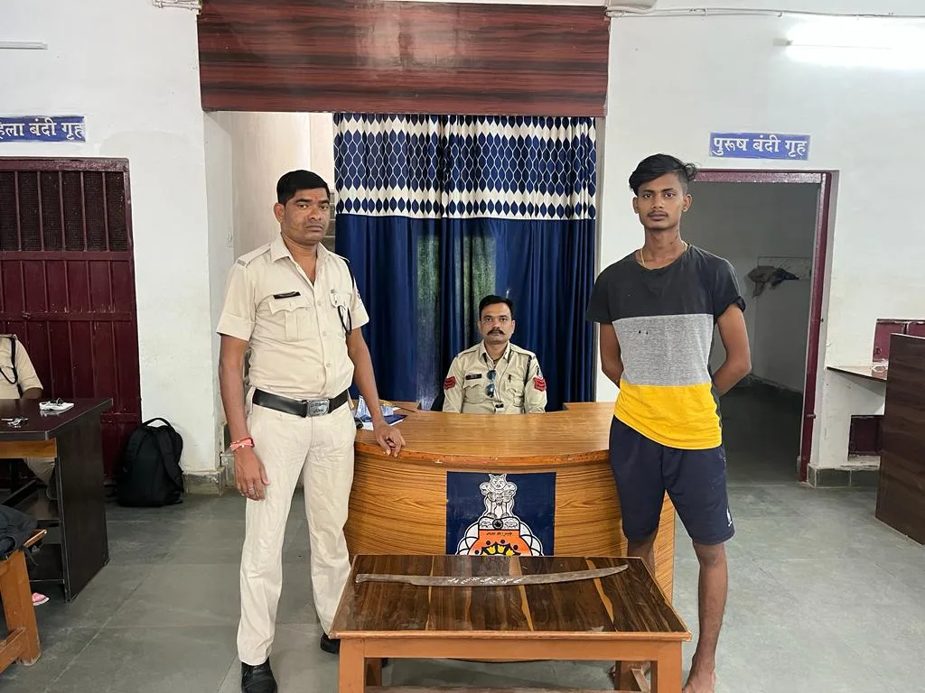 बिलासपुर / रतनपुर थाना में दिनॉंक 30/08/2023 को जरिये मुखबीर से सूचना मिली की मावली चौक करैहापारा रतनपुर में एक व्यक्ति हाथ में तलवारनुमा हथियार लहरा रहा है। तथा लोगों को डरा धमका रहा है। कि सूचना पर थाना प्रभारी रतनपुर के द्वारा त्वरित कार्यवाही कर थाना से टीम रवाना किया। मुखबीर के बताये स्थान मावली चौक करैहापारा रतनपुर में रेड किया जहॉं पर एक व्यक्ति हाथ में तलवारनुमा हथियार लिये लहराते लोगों को डरा धमका रहा था जिसे पुलिस घेराबंदी कर युवक से तलवार को जप्त कर, उससे नाम पता पूछने पर अपना नाम राजा कश्यप उर्फ सन्नी पिता रामझुल कश्यप उम्र 20 वर्ष निवासी करैहापारा रतनपुर थाना रतनपुर जिला बिलासपुर (छ.ग.) का रहने वाला बताया। जिसे उक्त हथियार के साथ थाना लाकर धारा 25,27 आर्म्स एक्ट का अपराध घटित करना पाये जाने से आरोपी को गिरफ्तार कर न्यायिक रिमाण्ड पर भेजा गया।