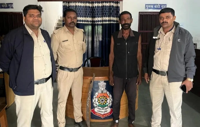 थाना रतनपुर में दिनॉंक 28/11/2023 को जरिये मुखबीर से सूचना मिली की ग्राम कलमीटार में बाजार चौक के पास एक व्यक्ति हाथ में धारदार तलवार लहराकर रास्ते में आने जाने वालों को लोगों को डरा रहा है। कि सूचना पर थाना प्रभारी रतनपुर के द्वारा उक्त सूचना से उच्च अधिकारियों को अवगत कराकर, त्वरित कार्यवाही करने थाना से टीम रवाना किया। मुखबीर के बताये स्थान ग्राम कलमीटार बाजार चौक के पास जाकर रेड किया जहॉं पर एक व्यक्ति हाथ में धारदार तलवार लहराते लोगों को डरा धमका रहा था जिसे पुलिस घेराबंदी कर युवक से धारदार तलवार को जप्त कर, उससे नाम पता पूछने पर अपना नाम उदेशराम धीवर निवासी कलमीटार का होना बताया। उक्त व्यक्ति को हथियार के साथ थाना लाकर धारा 25,27 आर्म्स एक्ट का अपराध घटित करना पाये जाने से आरोपी को गिरफ्तार कर न्यायिक रिमाण्ड पर भेजा गया।