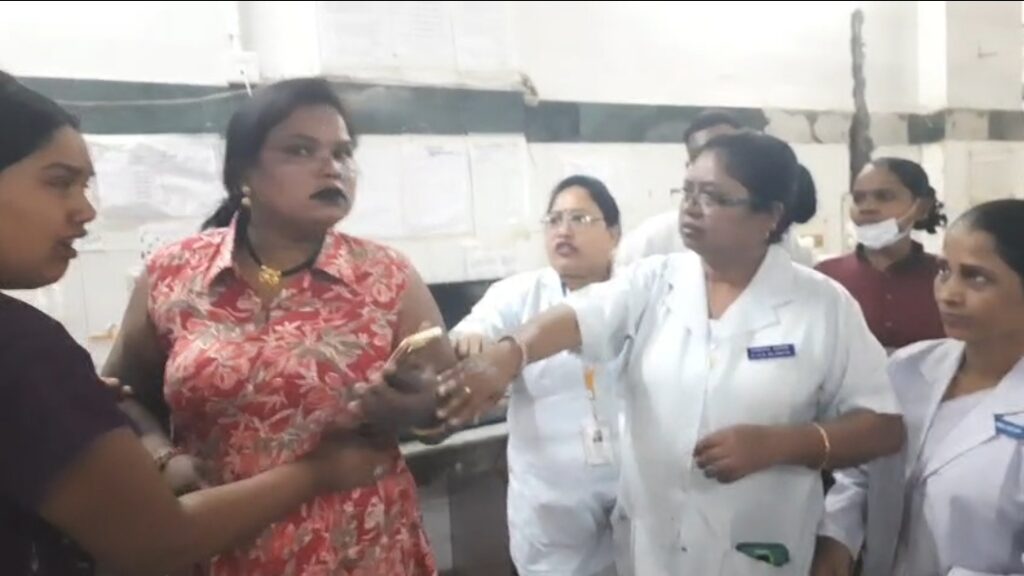 सिम्स अस्पताल में उस समय बवाल मच गया जब गायनिक वार्ड में भर्ती एक महिला को डिस्चार्ज कराने पहुंची उसकी मां ने जल्द डिस्चार्ज टिकट बनाने को लेकर दबाव बनाना शुरू कर दिया। स्टाफ नर्स द्वारा शांत रहने और सलीके से बात करने की समझाइश पर महिला परिजन भड़क गई और गुस्से में आकर नर्स को थप्पड़ मार दिया।घटना बीते दिन की बताई जा रही है,जिसका वीडियो वायरल हो रहा है,, जब गायनिक वार्ड में इंटर्न डॉक्टर और स्टाफ नर्स ड्यूटी पर तैनात थे।