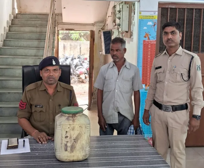 ’’ अवैध कच्ची महुआ शराब 06 लीटर कीमती 600 रू. किया गया बरामद।
