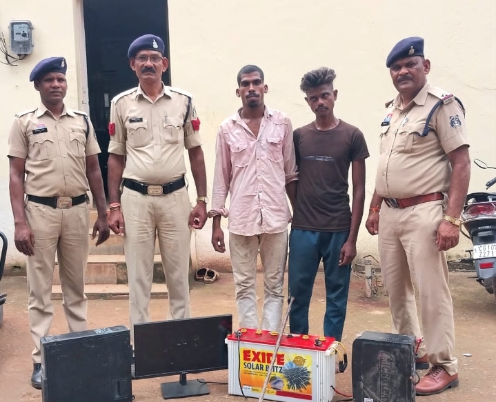 बिलासपुर :- सीपत थाना क्षेत्र के ग्राम सोंठी में सेवा सहकारी समिति मर्यादित से रात में चोरी की घटना हुई। चोरों ने खिड़की तोड़कर कम्प्युटर, मानीटर, सीपयू, 2 इनवईटर और बैट्री चोरी की, जिसकी कुल कीमत 80,000 रुपये है।पुलिस ने तत्काल कार्रवाई करते हुए आरोपी चंदन उर्फ भोलू और किशन उर्फ रामू को गिरफ्तार किया। पूछताछ में आरोपियों ने चोरी करना स्वीकार किया और चोरी की गई संपत्ति बरामद हुई।अधिकारियों के निर्देशन में यह कार्रवाई हुई और दोनों आरोपियों को न्यायिक रिमांड पर जेल भेजा गया। मामले की जांच अभी भी जारी है।