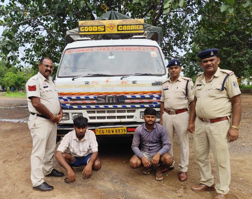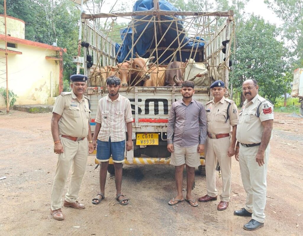 सीपत थाना क्षेत्र में पुलिस ने मवेशी तस्करी की बड़ी कोशिश को नाकाम कर दिया है। ग्राम झलमला मेन रोड के पास स्वराज माजदा वाहन में 17 नग मवेशी गाय, बछड़ा, बैल ले जा रहे दो आरोपियों को पुलिस ने धरदबोचा। पकड़े गए आरोपियों में भारत यादव और सुरेंद्र यादव दोनों चिल्हाटी, थाना सरकंडा के निवासी हैं।वरिष्ठ पुलिस अधीक्षक रजनेश सिंह के निर्देश पर एएसपी राजेन्द्र जायसवाल और सीएसपी सिद्धार्थ बघेल के मार्गदर्शन में निरीक्षक गोपाल सतपथी की टीम ने घेराबंदी कर यह कार्रवाई की।