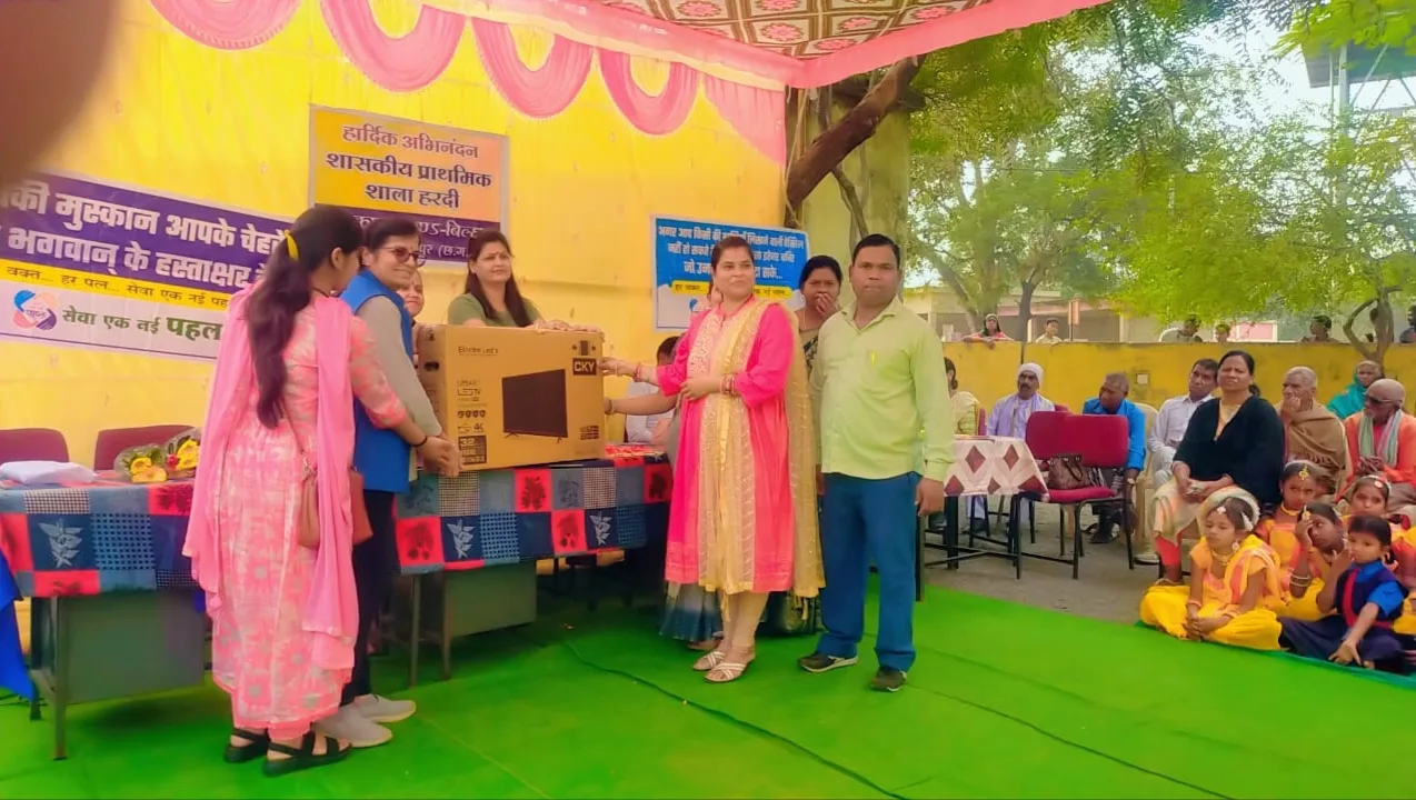 हरदी :- प्राइवेट स्कूल जैसा स्मार्ट स्कूल सरकारी स्कूल को बनाने की दिशा में सेवा एक नई पहल के टीम द्वारा शासकीय प्राथमिक शाला हरदी को LED TV उपहार किया गया साथ ही साथ स्कूल के सभी बच्चों को कॉपी पेन पेंसिल दिया गया,जिससे पाकर बच्चों के चेहरे की खुशी देखते बन रही थी, जो एक कहावत को चरितार्थ कर रही थी, सेवा के लिए किसी धन की नहीं केवल मन की आवश्यकता होती है। सेवा एक नई पहल’ स्वयंसेवी संस्था की पूरी टीम द्वारा नि:स्वार्थ भाव से लोगों की सेवा कर रहे है । इसी कड़ी में जब शासकीय प्राथमिक शाला हरदी की शिक्षिका दीपिका श्रीवास्तव द्वारा स्कूल के बच्चों के लिए स्मार्ट टीवी,कॉपी, पेन,पेंसिल खिलौने और शैक्षणिक सामाग्री के लिए सेवा एक नई पहल की संयोजिका श्रीमती रेखा आहूजा से संपर्क किया गया, तो तत्काल ही उन्होंने उनके आग्रह को स्वीकार करते हुए स्कूल में अध्ययनरत सभी बच्चों के लिए कॉपी,पेन,पेंसिल और साथ ही बालबाड़ी के बच्चों के लिए खिलौने, शैक्षणिक सामाग्री के साथ ही गाँव के सम्मानित बुजुर्गों के लिए धोती कुर्ता एवम कम्बल उपहार स्वरूप दिया गया । रेखा आहूजा जी , भावना पोपटानी ,रजनी मलघानी हर्षा भक्तानी द्वारा विद्यादायिनी मां सरस्वती के प्रतिमा पर माल्यापर्ण और पूजन वंदना के साथ किया गया उसके बाद स्कूल के बच्चों द्वारा नृत्य और नाटक की प्रस्तुति दी गई । इसी क्रम में हमारे शाला के अध्यनरत होनहार एवम मेधावी छात्रों के साथ साथ ऐसे बच्चों को भी सम्मानित किया गया जिनकी उपस्थिति 100% होती है, साथ ही सक्रिय पालक ( माताओं) को साड़ी उपहार में दिया गया । कार्यक्रम में गाँव के तीन बुजुर्गों को भी सम्मानित किया गया जिनका शाला के कार्यो में विशेष योगदान रहता है, श्री लैन दास जी को वृक्ष मित्र सम्मान से सम्मानित किया गया । सेवा एक नई पहल द्वारा शिक्षा के क्षेत्र में किये जा रहे नेक कार्य हेतु शाला परिवार कृतघ्न और आभारी है इस अवसर पर उपस्थित शिक्षकगण श्री माघे लाल मरावी, श्रीमती लक्ष्मी कौशिक, हेमलता वर्मा और पूर्व माध्यमिक शाला से प्रधान पाठक उमेन्द् कौशिक एवम जसबीर सिंग चावला के साथ ग्राम के सरपंच मनोज यादव पंच प्रतिनिधि एवम ग्रामवासी भी उपस्थित थे । उपरोक्त कार्यक्रम को सफल बनाने में शासकीय प्राथमिक शाला की शिक्षिका दीपिका श्रीवास्तव के साथ उपसरपंच रवि यादव जी का विशेष योगदान रहा ।।