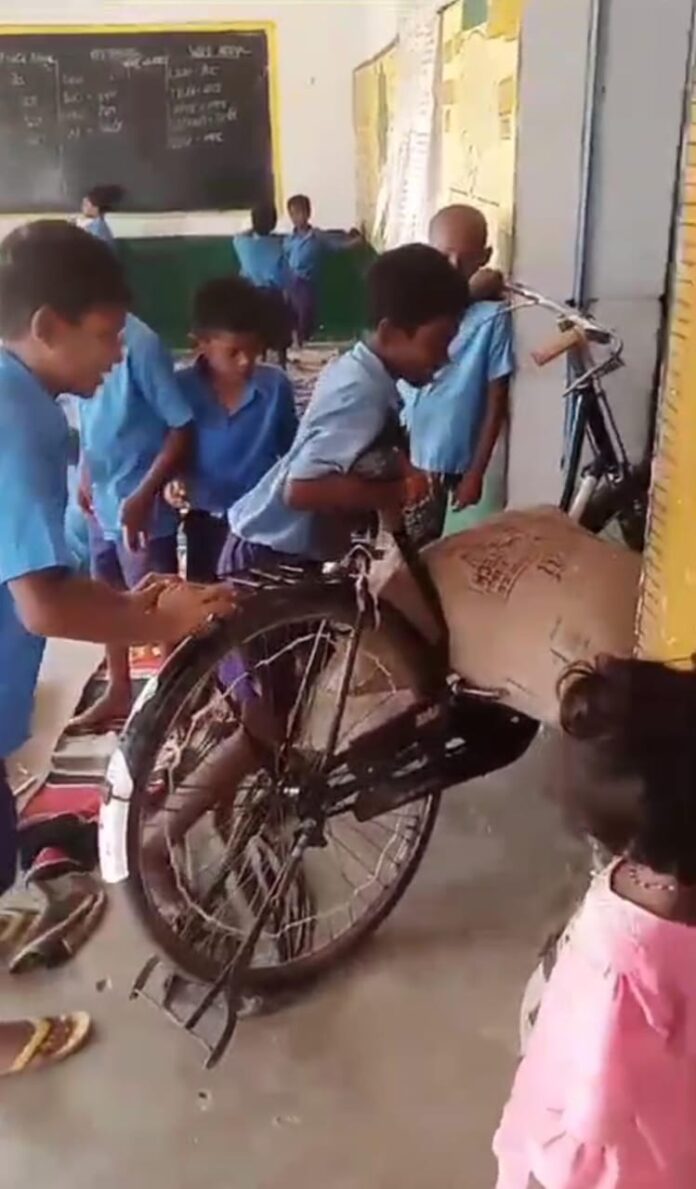 मस्तूरी विकासखंड के ग्राम सोन स्थित एक सरकारी प्राइमरी स्कूल का चौंकाने वाला वीडियो सोशल मीडिया पर तेजी से वायरल हो रहा है, जिसमें स्कूली छात्र साइकिल पर 50 किलोग्राम चावल की बोरी ढोते हुए दिख रहे हैं। यह चावल मध्यान्ह भोजन के लिए स्कूल तक पहुंचाया जा रहा है।मिली जानकारी के अनुसार, स्कूल की हेडमास्टर पुष्पा साहू पर आरोप है कि उन्होंने छात्रों से 50-50 किलोग्राम की चार बार में लगभग 2 क्विंटल चावल स्कूल तक लाने का काम कराया।इस काम के कारण बच्चों की पढ़ाई पर भी बुरा असर पड़ रहा है। बच्चों का कहना है कि स्कूल में पढ़ाई कराने के बजाय उनसे यह भारी काम करवाया जा रहा है।गांव के एक युवक ने इस घटना का वीडियो बनाकर इसे सोशल मीडिया पर डाल दिया, जो अब तेजी से वायरल हो रहा है।